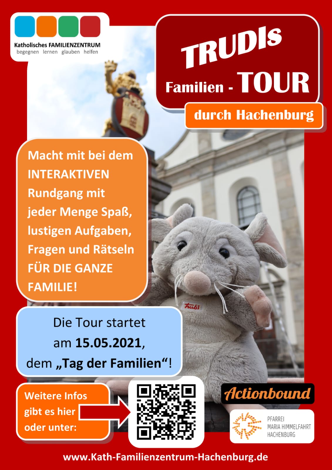 Wir haben einen Actionbound erstellt, bei dem für die ganze Familie etwas dabei ist - es wird gesucht, geraten, bewegt, gehüpft, gesungen, etwas gelernt und am wichtigsten: es wird gemeinsam etwas erlebt! Gemeinsam mit der eigenen Familien, aber auch gemeinsam mit Trudi und ihrer Rasselbande. Deshalb heißt unser Actionbound auch "Trudis Familien-Tour durch Hachenburg".