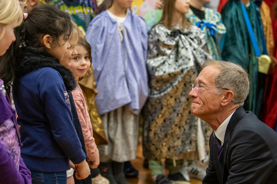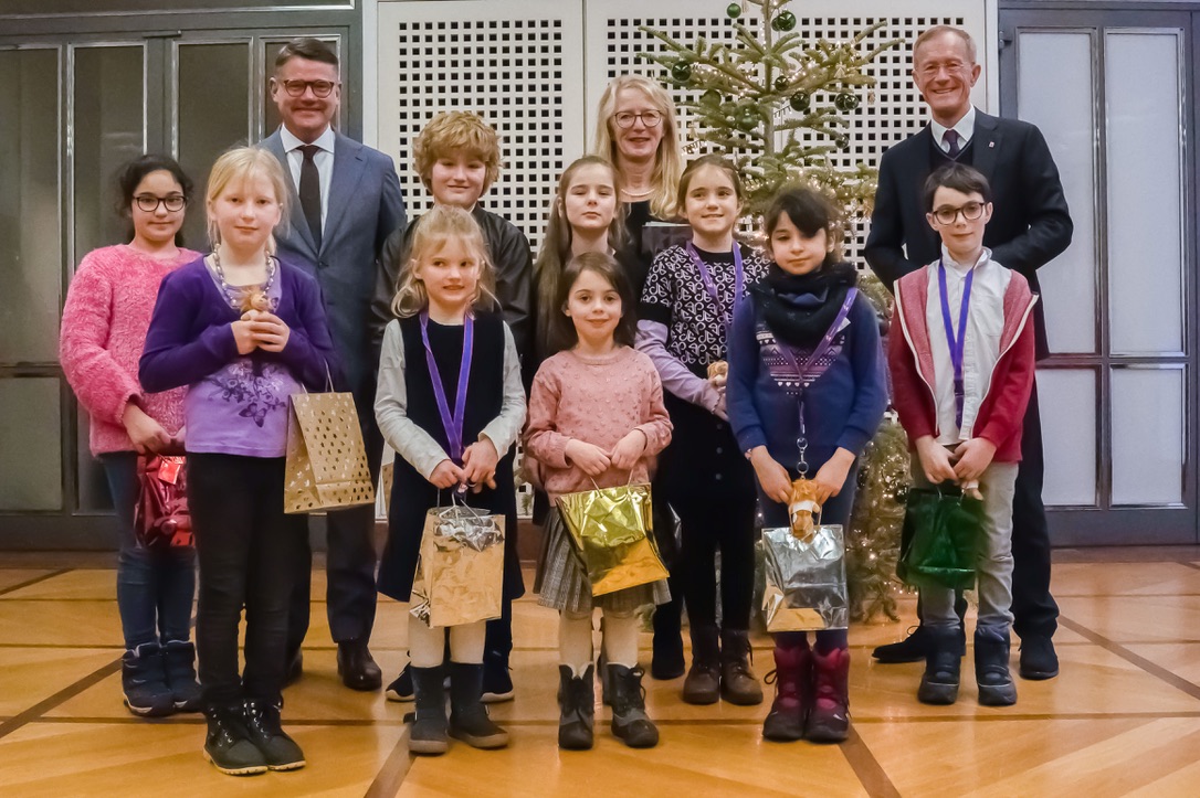 Zum Abschied bekamen alle Kinder von Boris Rhein Geschenktüten überreicht, die aber nicht allein Grund zu großer Freude darüber waren, an diesem Tag die Reise nach Wiesbaden angetreten zu haben, sondern vor allem das gemeinsame Singen und Bitten an einem schulfreien Tag.