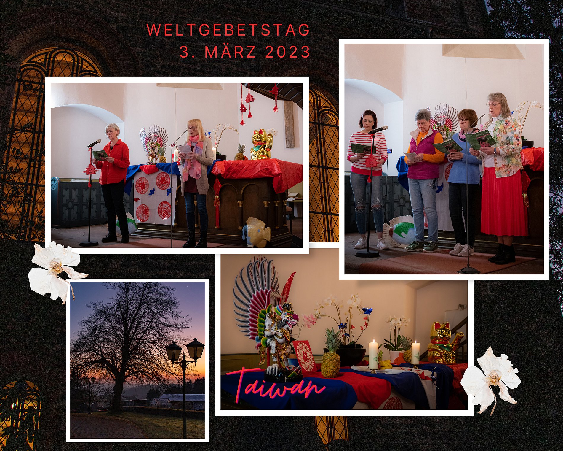 - Der Gottesdienst zum Weltgebetstag der Frauen , am 3. März 2023, wurde in diesem Jahr von Frauen aus Taiwan vorbereitet. Evangelische und katholische Frauen gestalteten gemeinsam eine ansprechende Feier in der Kirburger Kirche. Im Anschluss wurde zum Essen bei landestypischen Speisen eingeladen, das großen Anklang fand. Es entwickelten sich angeregte Gespräche in einem gemütlichen Rahmen.