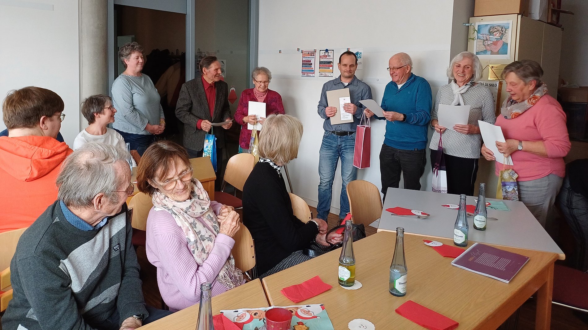 Nach dem Gottesdienst trafen sich am ersten Advent im Pfarrhof in Hachenburg die Kolpingfamilien Hachenburg und Marienstatt zum diesjährigen Kolpinggedenktag. Nach dem gemeinsamen Mittagessen konnten eine Person aus der Kolpingfamilie Marienstatt für 25jährige Mitgliedschaft und weitere vier Gründungsmitglieder für 40jährige Mitgliedschaft geehrt werden. Mit besinnlichen und heiteren Texten, gemeinsamen Bastelangeboten und der Reflexion über den persönlichen ökologischen Fußabdruck stimmten sich Jung und Alt gemeinsam auf die Adventszeit ein.