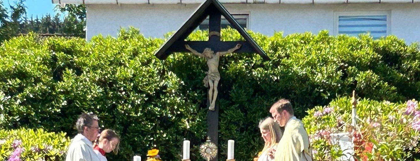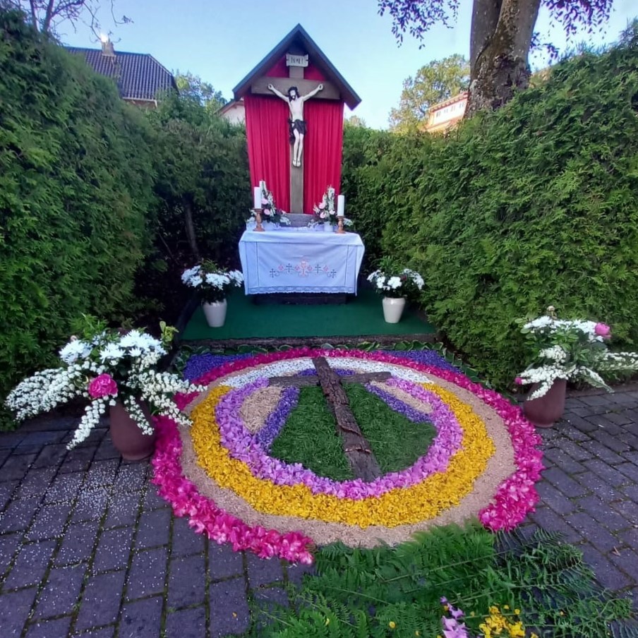 Mit Liebe geschmückte Altäre und Blasmusik zur Ehre Gottes Mehr lesen: Bild anklicken
